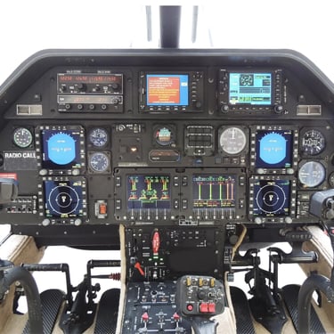 Horizonte Artificial, Altímetro Radar, Operación con Piloto Único, Autopiloto, Radar Meteorológico Aéreo, Sistema de Evitación de Tráfico, Instrumentos de Navegación de Piloto Doble (LCD EADI y EHSI, ADI de respaldo), Paquete Aviónico Honeywell FZ-702, Intercomunicador de Piloto y Copiloto, Garmin 530 Nav/Com/GPS, Garmin 430 Nav/Com/GPS, Mark XXI EGPWS, Skywatch Sky 497 Asesor de Tráfico, Unidad de Pantalla Electrónica Doble (EDU), Instrumentos de Vuelo de Copiloto, King KR 87 ADF, Baliza de Marcador King, Altímetro Radar, King KMD 706A DME, King KT 71 Transpondedor, Indicador de Actitud de Respaldo, Indicador de Velocidad Aérea Doble, Altímetro Doble, Indicador de Velocidad Vertical Doble (VSI), Panel de Control Helipilot, AFCS 3 Ejes Duplex, Director de Vuelo y Autotrim, Pantalla Multifuncional King KMD 850 con Mapa en Movimiento, Radar Meteorológico King RDR 2000, Panel de Audio de Cabina, Reloj, Brújula Magnética.